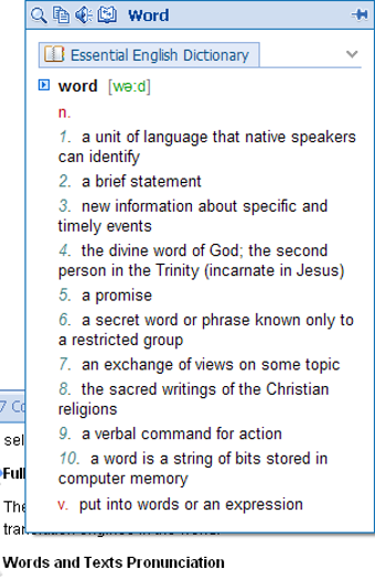 Coolexon Dictionary présente une interface très simple, inspirée des navigateurs Internet. Tapez le mot désiré dans la barre de recherche, sélectionnez la langue dans laquelle vous voulez le traduire et vous obtenez sa définition ou sa traduction instantanément. Le logiciel permet de copier, imprimer ou sauvegarder vos recherches au format HTML.Vous pouvez même écouter la prononciation correcte lue par une voix-off un peu robotique.